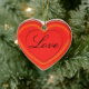 El ornamento en forma de corazón en la parte delantera muestra un corazón rojo "ondulado" (brillante y tridimensional) con un corazón de estructura de alambre rojo en el centro. En el centro del corazón más pequeño está la palabra "amor" en escritura. Al revés, personalizar con nombres en escritura negra, sobre el corazón "jalado".