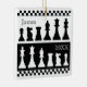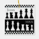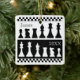 Ornamento cuadrado de piezas de ajedrez en blanco y negro