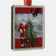 Hermosa festividad EE.UU. patriótico Santa Claus adorno cuadrado premium de plata. Este adorno tiene a Santa decorando un árbol de Navidad, con un águila norteamericana volando para poner encima a la estrella dorada y brillante. El fondo es una escena de montaña en invierno, con una frontera roja que serpentea por encima. Hay luces de Navidad rojas, blancas y azules, y Santa lleva puesto un parche de la bandera estadounidense delante de su chaqueta. Una maravillosa adición a su decoración de vacaciones, o entrega de regalos sería un gran regalo para un veterano o alguien que actualmente está en el ejército, o un coleccionista. El arte se exhibe dentro de un elegante marco de color plateado adornado y también viene con una cinta roja para colgarse del árbol. Este diseño está disponible en diferentes formas y estilos de adornos. Para más Navidades militares vacaciones estilos de ornamentos, regalos, pegatinas, etiquetas, tarjetas, sellos y mucho más por favor visite nuestra tienda!