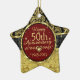 Espinillas de oro y diamantes patrón de damascas florales en fondo borgoñoso adorno de navidad de 50 años de boda.
