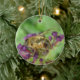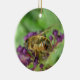 Este adorno de estilo bonito está decorado con una fotografía detallada de una abeja de miel sentada en algunas flores moradas que juntan polen. La foto fue tomada usando macrofotografía para un resultado detallado.