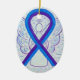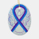 El adorno de ángel de la guarda presenta la pintura de un ángel de la cinta azul y púrpura. Cinta de sensibilización azul y púrpura significa apoyo para la toma de conciencia de la artrosis pediátrica y la artritis reumatoide. El arte de la cinta de ángel de la conciencia azul y púrpura se puede personalizar con mensajes personalizados para hacer ornamentos de gran causa o colgantes para recaudadores de fondos, Navidades de concientización o regalos de vacaciones, u otros eventos o ocasiones especiales.