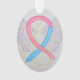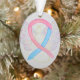 El ornamento de la fiesta de ángel de la guarda presenta la pintura de un ángel de cinta rosa y azul. El arte de las cintas de ángel de conciencia rosa y azul puede ser personalizado con mensajes personalizados para hacer ornamentos de gran causa o pendantes para recaudadores de fondos, Navidades de concientización o regalos de vacaciones, u otros eventos o ocasiones especiales.