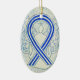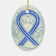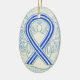 El adorno de ángel de la guarda presenta la pintura de un ángel de cinta azul y blanco. Cinta de sensibilización azul y blanca significa apoyo a la esclerosis lateral amiotrófica (ELA). El arte de las cintas de ángel de conciencia azul y blanco se puede personalizar con mensajes personalizados para hacer ornamentos de gran causa o pendantes para recaudadores de fondos, Navidades de concientización o regalos de vacaciones, u otros eventos o ocasiones especiales.