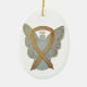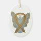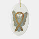 El ornamento de ángel de la guarda presenta la pintura de un ángel guardián de la cinta de la conciencia del oro. La cinta de oro significa apoyo para la concienciación sobre el cáncer infantil o pediátrico. El arte de la cinta de ángel de la conciencia del oro se puede personalizar con mensajes personalizados para hacer ornamentos de gran causa o pendantes para recaudadores de fondos, Navidades de concientización o regalos de vacaciones, u otros eventos o ocasiones especiales.