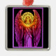 Un espectacular ángel de vidrio manchado, con colores brillantes de joyas con un halo dorado, anunciando la llegada de Navidades.