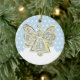 Este adorno muestra un bello ángel blanco jugando en la nieve. La imagen de ángel proviene de la pintura de ángel de la guarda blanca y plateada de una serie de siete pinturas de ángeles arcoiris. Esta es una gran imagen de ángel para usar durante las vacaciones como Navidades o Año Nuevo.