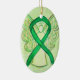 El ornamento de ángel de la guarda presenta la pintura de un ángel de cinta de conciencia verde. El arte de la cinta de ángel de la conciencia verde se puede personalizar con mensajes personalizados para hacer ornamentos de gran causa o colgantes para recaudadores de fondos, Navidades de concientización o regalos de vacaciones, u otros eventos o ocasiones especiales.