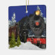 Decora tu árbol de Navidad con este adorno de árbol vintage. Este adorno cuenta con una "locomotora de motor a vapor" y un fondo de nieve en invierno. En el fondo es donde puede personalizar este ornamento con su texto, saludo y fecha. Los amantes del tren apreciarán este adorno como regalo de sus Navidades.