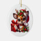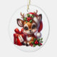 Este adorno de cerámica de árbol de Navidad se muestra en forma redonda con una estampación de ciervos de Navidades festivos. Personalizar este artículo o compra tal cual. Imprimir con licencia