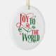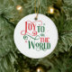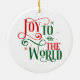 Este adorno de cerámica de árbol de Navidad se muestra en forma redondeada con una fiesta festiva Alegría al mundo impreso. Personalizar este artículo o compra tal cual.