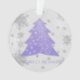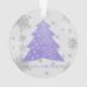 Decore su árbol esta temporada de vacaciones con un adorno de árbol de Navidad festivo de Lavender. El diseño ornamental incluye un vibrante y festivo árbol de Navidad adornado con caídas de copos de nieve grises y blancos con un saludo de vacaciones. También hay artículos de regalo y de vacaciones disponibles con este diseño.