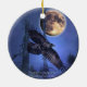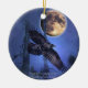 Un Raven Espíritu negro de medianoche vuela delante de una luna llena enorme. Imagen poderosa con un mensaje espiritual.