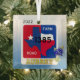 Este ornamento incluye los colores de la bandera y el contorno del estado de Texas, los colores de Aubrey y los tonos azules.