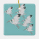 Ibis blanco en vuelo sobre fondo acuamarino. Un caprichoso ilustracion de aves costeras.