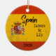 Un adorno de recuerdo de Bandera personalizado diseñado para celebrar su inolvidable viaje a España. Ya sea que viaje por trabajo, que disfrute de una escapada romántica o que participe en un programa de intercambio escolar, este adorno conmemora un momento especial que siempre apreciará. Celebra el año de tu viaje, ya sea como pareja casada, con familia o en una aventura en solitario, con nuestro adorno de souvenirs de bandera muy bien hecho. Este adorno de cerámica tiene un diseño de tipo grunge, lo que le da un aspecto algo gastado en comparación con un adorno de bandera habitual. Con una impresión frontal y posterior, muestra orgullosamente la bandera sin importar de qué manera la cuelgues en tu árbol de Navidad. También es un regalo perfecto para la familia o los amigos, creando un recuerdo memorable para los años venideros. Diseño personalizado: Personalizar tu ornamento con un nombre de pila, un nombre de familia o un mensaje de personalizado. También puede añadir un año para crear un keepsake verdaderamente único. Uso versátil: ¡Más que sólo un adorno de árbol! Muestra este hermoso ornamento en tu hogar todo el año como un recordatorio duradero de tus vacaciones especiales. Nuestro ornamento de recuerdo de la bandera es más que una decoración, es un gran placer simbolizar tu viaje por explorar el mundo. Cada ornamento está diseñado meticulosamente para capturar la alegría y la emoción de sus vacaciones de ese año.