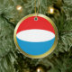 A ambos lados de este adorno se encuentra la bandera de Luxemburgo transformada en un círculo con un borde dorado. Decoración luxemburguesa sencilla para tu casa.