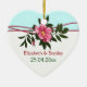Ornamento de boda floral rosa rosado salvaje, con un hermoso rosa salvaje de color rosa con hojas verdes oscuras, líneas onduladas rojas y elementos de tono medio sobre fondo blanco y azul claro. Este diseño floral, elegante y romántico se puede utilizar para ocasiones especiales como compromisos, bodas, cumpleaños, aniversarios o el Día de la Madre.