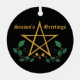 Abran el lado místico de la temporada navideña con este adorno navideño redondo con una estrella bruja y un diseño de hojas que se asemejan a un pentáculo con un fondo negro profundo. Encima del motivo encantador se encuentran las palabras "Greetings's Greetings" (Saludos de temporada) con un tono elegante, lo que lo convierte en una mezcla perfecta de alegría festiva y de vibraciones paganas o Wiccan. Ya sea que estés decorando tu propio árbol o buscando un regalo único y significativo para los Navidades, este adorno añade un toque de magia a cualquier celebración. Ideal para los que aprecian los diseños espirituales e inspirados en la naturaleza, es la adición perfecta a una decoración de brujería.