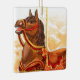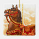 He amado a los carruseles desde que era niño. Los diseños de los animales y la música de los carruseles instalados en ferias y parques tienen un lugar especial en mi corazón. Eso sirvió como inspiración para dibujar unos caballos de carrusel propios y después pintarlos con tinta acrílica. Esta acuarela de un caballo de bahía decorado en rojo y oro es uno de los resultados, subido y aplicado a estos adornos.