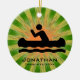 Canoa Navidades de ornamentos personalizados 20XX. Una canoa contra un fondo verde y naranja de arranque. ¡Todo el personalizable de texto, delante y atrás!