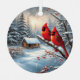 El diseño incluye dos cardenales rojos en un día de invierno. Los cardenales son aves amadas por su belleza y colores llamativos. A menudo se les asocia con emociones positivas y simbolismo espiritual. Según Birds and Blooms, los cardenales son considerados como un signo de esperanza, alegría y amor. Según algunas creencias espirituales, ver juntos a dos cardenales rojos es un símbolo de amor, amistad y relación. Se cree que el universo usa estas aves para transmitir mensajes sobre nuestras relaciones con otros. El reverso del adorno está listo para su personalización.