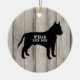 Pit Bull rústico adorno de cerámica de madera con una silueta bonita sobre un fondo de madera falsa. Personaliza con el nombre de tu perro y el año. También se podría usar como adorno conmemorativo pero cambiar de año en año de nacimiento o muerte. Hay otras razas y patrones disponibles en nuestra tienda (ver enlace de colección para otras razas/colores) y avíseme si no puedes encontrar tu raza: info@lemontreecards.com