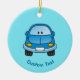 Coche personalizado azul sonriente. Texto personalizado en ambos lados.