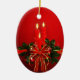 Abróchese su árbol de Navidad y dé un toque de calidez y emoción de las vacaciones a la decoración de sus Navidades con este encantador ornamento de árbol de Navidad de cerámica ovalada. Con tres velas rojas, un arco rojo y dorado y hojas verdes navidades sobre un fondo rojo, este adorno encantador es la manera perfecta de conmemorar la temporada de fiestas con tu familia y hace un gran regalo para todos tus seres queridos.en