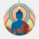 Este ornamento de cerámica especial tiene la imagen y el mantra de la medicina Buda en un lado y un cierre para arriba de su cara en el otro. ¡Hace un aspecto maravilloso en su sitio de la capilla!