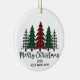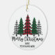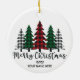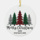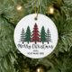Un bosque de árboles plagados subrayado por la frase "Feliz Navidad" - Personalizar este adorno con el año y su nombre!