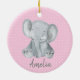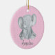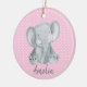 Elefante gris con puntos de polka blanco Diseño de adorno cerámico con color de fondo de personalizable y texto.