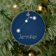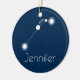 Ornamento personalizado de constelación auríaca. Con la constelación de Aries en un fondo naval, este adorno de Aries personalizado hace una perfecta adición a tu árbol de Navidad. Aries es el primer Rótulo del Zodiac e incluye a todos los individuos nacidos del 21 de marzo al 19 de abril. El símbolo de Aries es The Ram. Los rasgos de personalidad de Aries son aventureros, audaces, confiados, optimistas e impacientes. El pájaro de Aries es el Diamante y el planeta gobernante de Aries es Marte. Color de fondo y texto se pueden personalizar