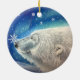 Ornamento que presenta Copos de nieve de oso polar de vida salvaje y artista de fantasía Michaeline McDonald de un oso polar sonriente con un copo de nieve en su nariz.