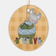 Un ratón Navidad con un ornamento de bola de Navidades grandes y texto que dice "Creer" contra un fondo amarillo dorado revisado y una espalda que puedes personalizar con un nombre, año u otro texto en ornamentos que seguro que atesorarás en los años venideros!