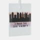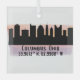 El ornamento de vidrio presenta la silueta de línea de horizonte de Colón, OH con coordenadas de mapa en un fondo de salpicadura de acuarela,