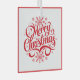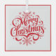 Este adorno de vidrio se muestra en un tamaño cuadrado con una clásica impresión festiva de Feliz Navidad de texto de escritura, copos de nieve y florecimiento. Color rojo y blanco. Personalice con texto de nombre y fecha si lo desea. Personalizar este elemento con esta plantilla o compre como se muestra.