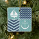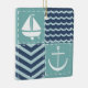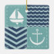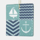 Un tejido inspirado en las plazas turquesas tormentosas, adornado con un velero y un ancla blancos, y cuadrados azul marino profundos, acentuados por cantos y olas azul claro, se acentúa con puntas blancas para crear un ambiente náutico clásico.