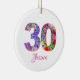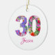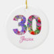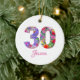 Ornamento floral 30 de cumpleaños. ¡Celebra un cumpleaños histórico con un toque de color! Este adorno de ceramicornio blanco personalizado está decorado con vibrantes estampados florales que forman el número '30', lo que lo convierte en un recuerdo perfecto para cualquiera que gire el gran 3-0. El nombre está guionado elegantemente abajo, enfatizando el toque personal. Personaliza con el nombre que elijas. Diseñado con amor. ¡Disfrútalo!
