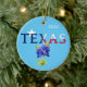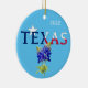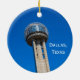 Un adorno de dos lados con la Torre de la Reunión de Dallas, y otro con el logo del color de la bandera de Texas y los mosquiteros azules.