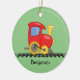 Pequeño ornamento de diseño de motor rojo con texto de personalizable y color de fondo.