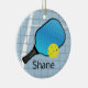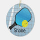 Ornamento de diseño de baloncesto con texto de personalizable en ambos lados. El baloncesto es un deporte de raquetas/remo que fue creado combinando elementos de otros deportes de raquetas. Dos o cuatro jugadores usan palas sólidas para golpear una bola de polímero perforada (como una bola espumosa) sobre una red.