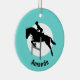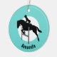 Ornamento de diseño ecuestre con color de fondo y texto (frontal y posterior) personalizables.