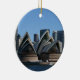 Este ornamento ofrece una diversa foto de Sydney en cada lado. En un lado hay el teatro de la ópera de Sydney. En el otro lado hay el puente del puerto y un transbordador.