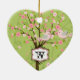 Nuestro ornamento en forma de corazón del árbol de la flor de cerezo es así que bonito y hace un gran regalo para los pares del boda. Ofrece un diseño rosado y verde hermoso con pájaros y un árbol por completo de flores de cerezo. ¡Añada fácilmente los nombres de novia y del novio, la inicial del monograma, y la fecha del boda para personalizar!
