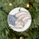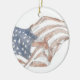Aquí hay un significativo ornamento navideño navideño con un dibujo de una bandera ondeando. Puedes personalizar el rojo festivo con tu propio mensaje, o dejar el mensaje del "Año Navidad". Se verá hermoso en tu árbol o en cualquier lugar en tu decoración de vacaciones. Es un gran regalo para cualquier patriota estadounidense.