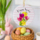Decore sus pechos de árbol de Pascua o de gabinete de cocina con este adorno de cerámica floral de primavera de bonito. Este adorno tiene tulipanes rosados y daffodils amarillos con una franja rosa y blanca. Un adorno floral de bonito como este sería un regalo meditado de Pascua para esa persona especial.