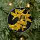 Este nombre de vacaciones presenta flores de forsythia doradas en un fondo negro puro. Los forsythias son uno de los primeros arbustos en flor en primavera. Cuando esta flor muestra sus pétalos de oro brillantes en el jardín, sabemos que el invierno se ha ido por otro año.