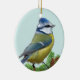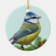 Foto de pájaro azul y amarillo personalizado en ornamento azul claro. ¡Ideal para todos!