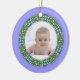 Un adorno de doble cara con un falso vidrio pintado de azul y verde. ¡Este es el regalo perfecto para los recién casados o los padres nuevos! Añade tu propio mensaje personalizado y haz de este un gran regalo de vacaciones! Lo tenemos en muchos colores de fondo, desde el rojo hasta el verde y todo lo demás.